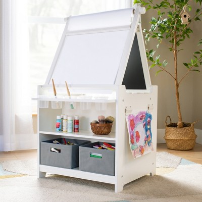 Guidecraft Kids Desk to Easel Art Cart - Natural: 3-in-1 Wood Art Easel & Craft Activity Table, Chalkboard, Paper Roller, Paint Cups & Storage Bins