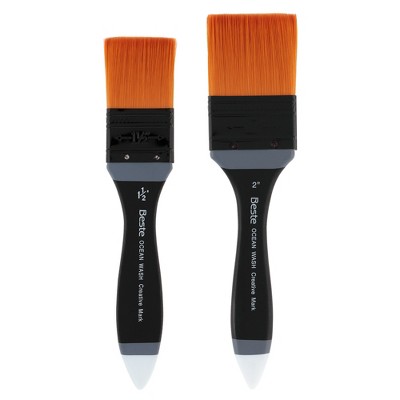 Creative Mark Beste Golden Taklon Ocean Wash 1.5" & 2" Artist Brush, Professional Watercolor Brushes, For Acrylic Painting, Short Handle, Sharp Edges,