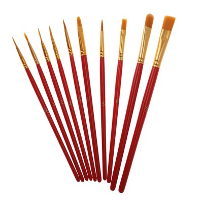 Unique Bargains Paint Brush Setfor Watercolor Nylon Bristles with Aluminum Ferrule and Wood Shaft 10 Pcs