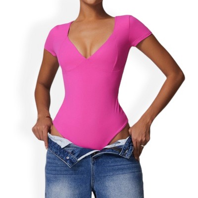 Long Sleeve Body Suits Womens V Neck Bodysuits Ruched Pleated Corset Bodysuit Leotard Trendy