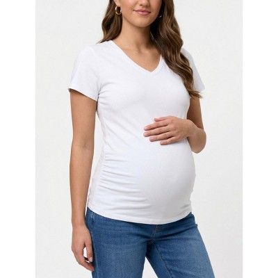 Women's V-Neck Side-Ruched Maternity Short Sleeve Tee | Motherhood Maternity