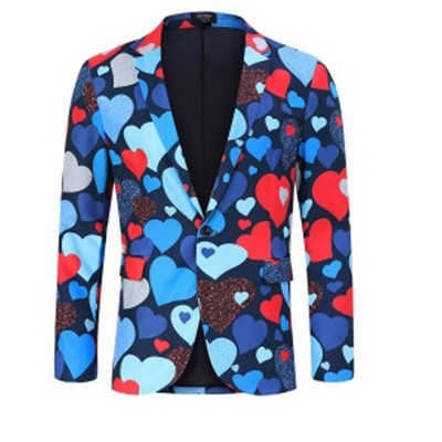 Men's Prited Blazer Jacket Long Sleeves Button V Neck Lapel Suit