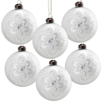 NAYSAYE Party Decoration and Accessories Glass Christmas Ball Ornaments Set of 6 for Christmas Tree Decors, White, 3.9"*3.9"*3.9"