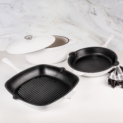 BergHOFF Neo Cast Iron 4Pc Set, Fry Pan 10", Square Grill Pan 11", & 5qt. Covered Dutch Oven
