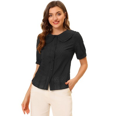 Allegra K Women's Peter Pan Collar Swiss Dots Short Sleeves Button Front Shirt