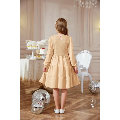 Arshiner Girls Dress Fall Boho Long Sleeve Shirred Smocked Tiered Party Dresses with Pockets