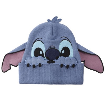 Disney Stitch Peekaboo Hands Blue Cuff Beanie