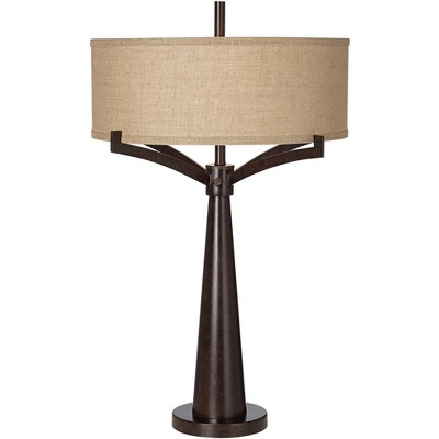 Franklin Iron Works Tremont Industrial Table Lamp 31 1/2" Tall Bronze Metal Burlap Fabric Drum Shade for Bedroom Living Room Bedside Nightstand Office