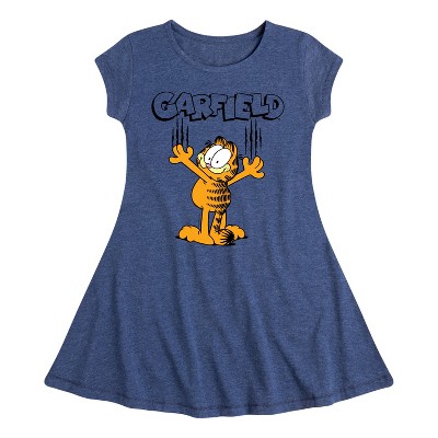 Girls' - Garfield - Garf Cat Scratches Fit & Flair Cap Sleeve Graphic Dress