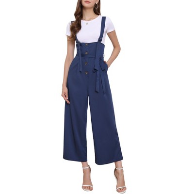 Allegra K Women's High Waist Wide Leg Belted Button Long Jumpsuit