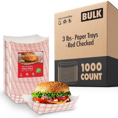 Stock Your Home 3-Lb Disposable Red & White Checkered Paper Food Trays (1000 Pack)