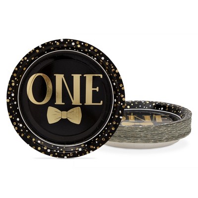 Blue Panda 48 Pack Black One Disposable Paper Plates for 1st First Birthday Party Supplies Decorations, 9 in