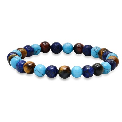 Steeltime Men's genuine fancy cut tiger eye beads and stainless steel lion charm drawstring bracelet