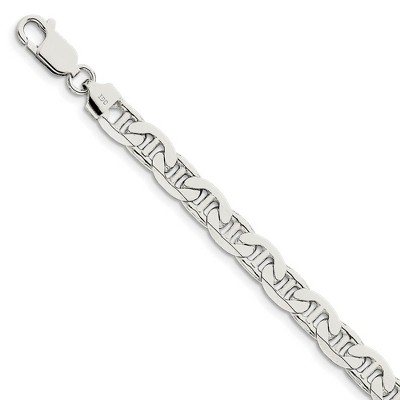 Black Bow Jewelry Men's 7mm, Sterling Silver, Solid Anchor Chain Bracelet