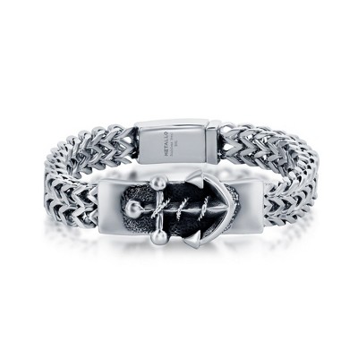 Black Bow Jewelry Stainless Steel & Black Leather Fleur de Lis Shield Bracelet, 8.25 In