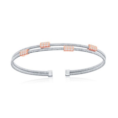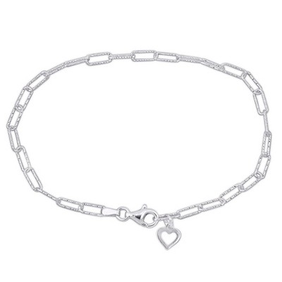 EVERLY JEWELRY | Sterling Silver Fancy-cut Oval Link Heart Charm Bracelet - 7.5 in