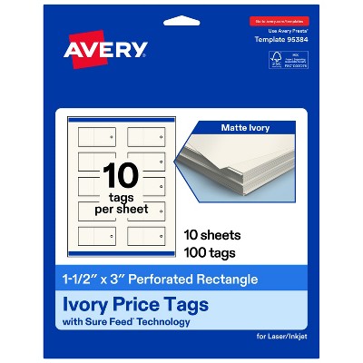 Avery Perforated Price Tags, 1-1/2" x 3", Matte Ivory, 100 Total