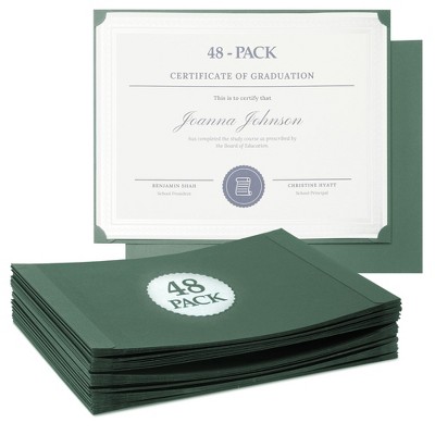 Paper Junkie Single Sided Award Certificate Holders 48-Pack – Green Paper Certificate Covers for Diplomas, Professional Award Folders