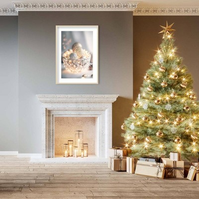 Amanti Art 25"x25" Blue and Tan Sophisticated Christmas II by Grace Popp Wood Framed Wall Art Print