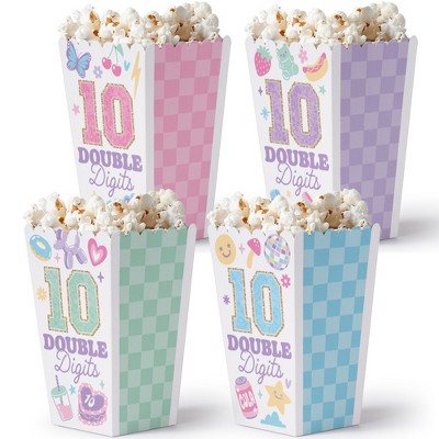 Big Dot of Happiness Preppy 10th Birthday Girl Popcorn Boxes, Pastel Hello Double Digits Favor Paper Containers, Party Treat Boxes - Set of 12