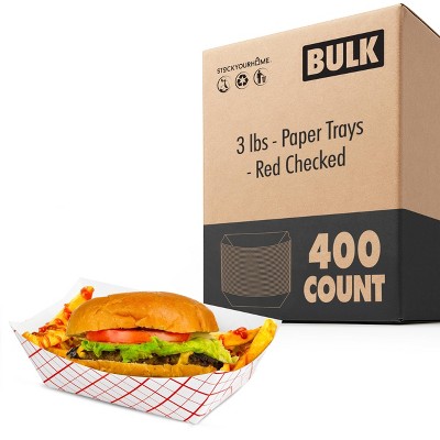 3 lb Paper Food Trays 400 Pack Red and White Checkered Disposable Food Boats Eco Friendly for Concessions Nachos Snacks Condiments 5.75 x 3