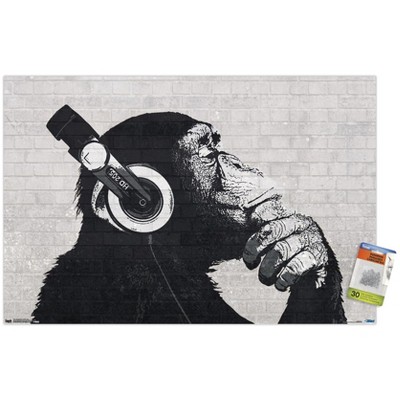 Trends International Chimp with Headphones on Wall Unframed Wall Poster Prints