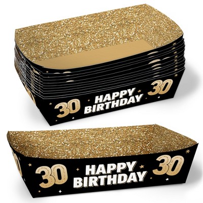 Big Dot of Happiness 90th Birthday Party Paper Food Trays, Disposable Food Boats, Black & Gold, Picnic, BBQ, Double-Sided Paper Meal Holders - 12 Ct