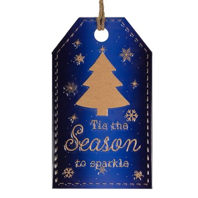 Northlight 12.25" Tis the Season to Sparkle Blue Christmas Gift Tag Wall Decoration