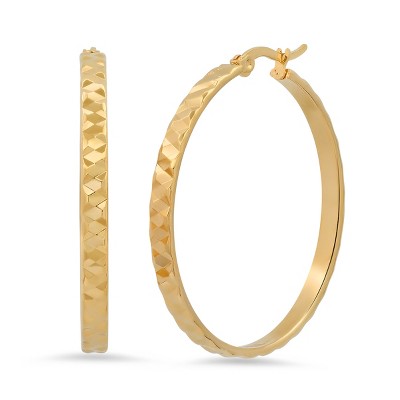 Steeltime Ladies18k gold plated stainless steel hammered hoop earrings