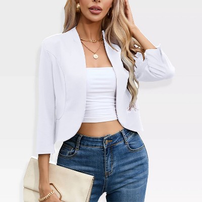 Allegra K Women's Draped Collar 3/4 Sleeve Ruffle Hem Work Office Open Front Blazer