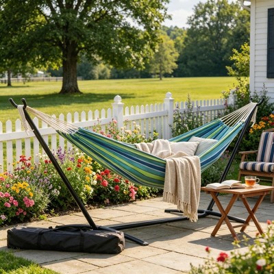 - $66.66 - $69.99reg $108.99 - $114.99 SaleHammock with Stand 200x150cm, 204kg Capacity Double Cotton Hammock Includes Carry Bag, Easy Assembly5 out of 5 stars with 3 ratings