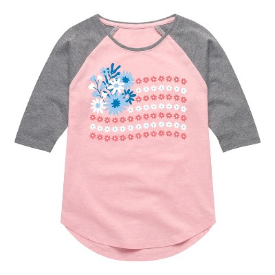 Girls' - Instant Message - Floral USA Flag Shirt Tail Raglan Graphic T-shirt
