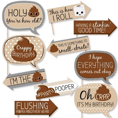Big Dot of Happiness Funny Oh Crap, You're Old - Poop Birthday Party Photo Booth Props Kit - 10 Piece