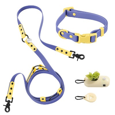 THE LICKER STORE Luna 8FT Adjustable 6-in-1 Waterproof Hands-Free Leash and Collar with LED Flashlight, Bag Dispenser, and Poop Bag Holder