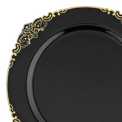 Smarty Had A Party 10.25" Black w/ Gold Fancy Plastic Dinner Plates - 120 Plates
