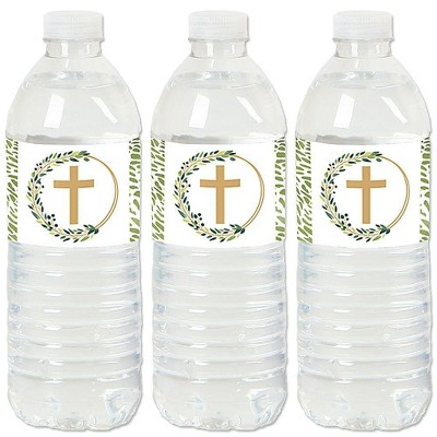Big Dot of Happiness Elegant Cross - Religious Party Water Bottle Sticker Labels - Set of 20
