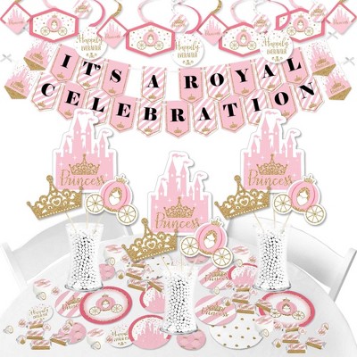 Big Dot of Happiness Little Princess Crown - Pink and Gold Princess Baby Shower or Birthday Party Supplies - Banner Decoration Kit - Fundle Bundle