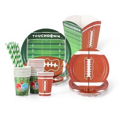 Football Party Decoration Kit, 125-Piece Superbowl Theme Tableware Set, Disposable Plates/Cups/Straws Buckets, for 25 Guests, Birthday Party