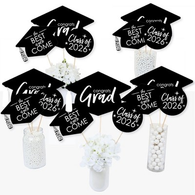 Big Dot of Happiness Black and White 2026 Graduation Party Centerpiece Sticks - Table Toppers - Set of 15