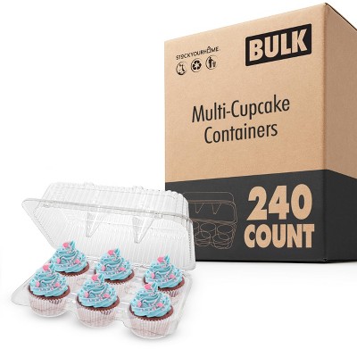 Stock Your Home 6 Compartment Plastic Cupcake Containers 240 Count Clear Container with Connected Dome Lid BPA Free for Standard Cupcakes