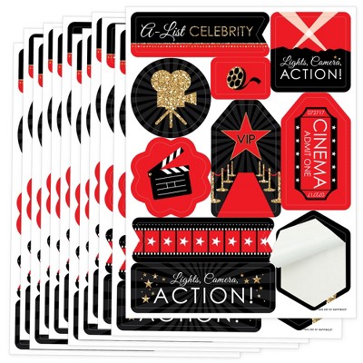Big Dot of Happiness Red Carpet - Movie Night Party Favor Sticker Set - 12 Sheets - 120 Stickers