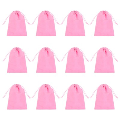 Blue Panda 12 Pack Pink Drawstring Party Favor Bags for Princess Birthday Party, Castle and Rose Print (10 x 12 In)