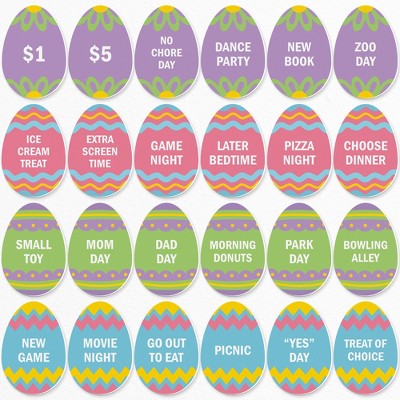 Big Dot of Happiness Hippity Hoppity Easter Egg Hunt Token Stuffers, 24 Count Egg Shape Filler Tokens with Rewards for Kids, Reusable Easter Activity,