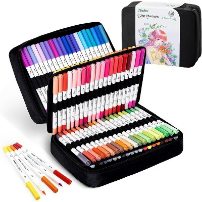 Ohuhu Markers Paper-friendly No Peeling Water-based 120 Colors Dual Brush Fineliner Tips Markers