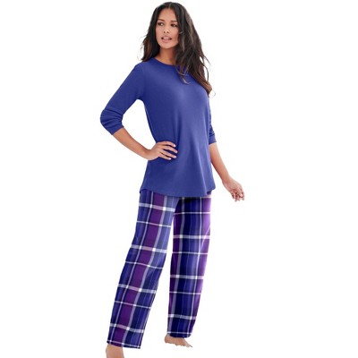 Allegra K Women's Winter Flannel Long Sleeve Nightwear Top and Pants Pajama Sets
