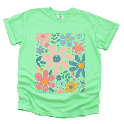 Pastel Flowers Collage - Women's Garment Dyed Graphic T-Shirt