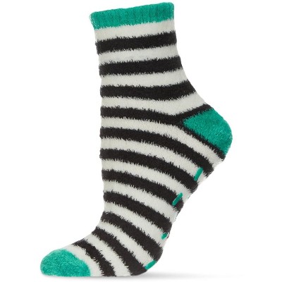 Memoi Marled Stripe Fuzzy Cotton Blend Boot Socks Seafoam One Size