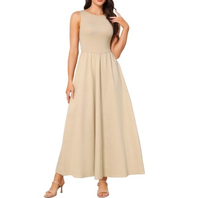 INSPIRE CHIC Women's Summer Striped Patchwork Square Neck Sleeveless A-Line Midi Dress