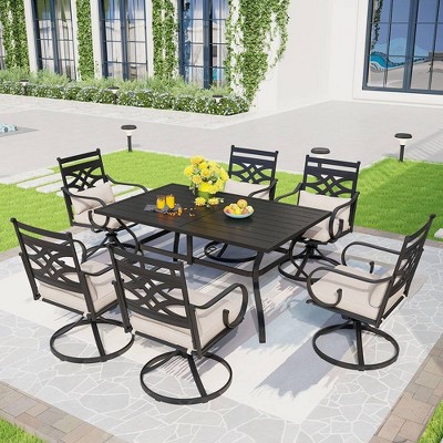 Captiva Designs 7pc Steel Outdoor Patio Dining Set with Swivel Chairs & Cushions Black: Rust-Resistant, Water-Resistant Set