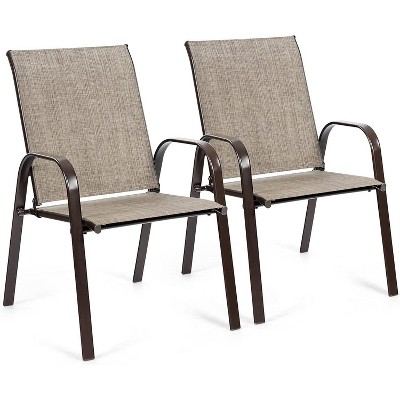 vidaXL Stackable Patio Chairs Outdoor Seating Stacking Dining Chair Steel - Gray Set of 2